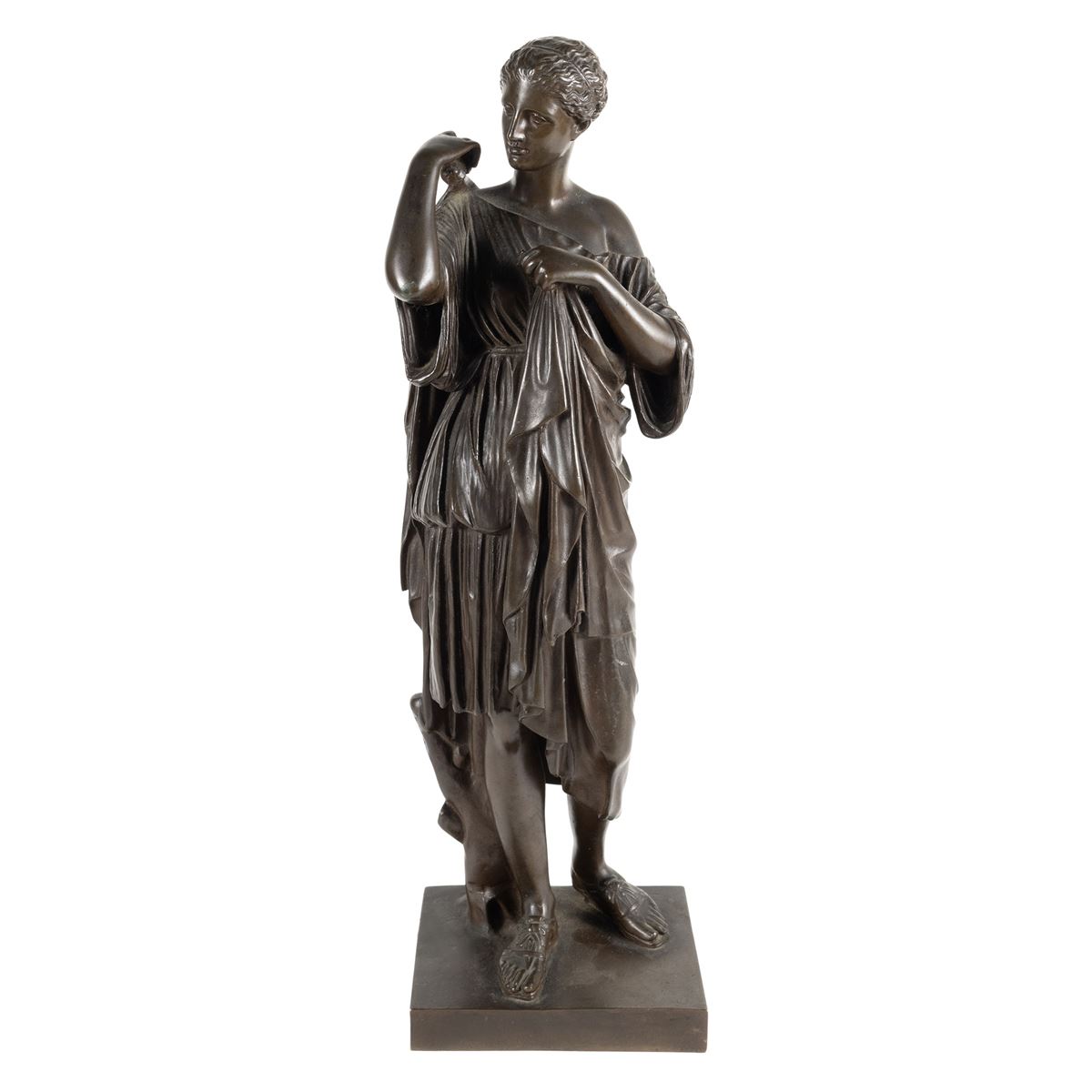 Fonderia Ferdinad Barbedienne, scultura in bronzo patinato - raffigurante la Diana di Gabi, firmata F. Barbedienne fondeurs con marchio sul retro - 9,5x39 cm. -