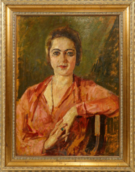 • Lot n° 0046 Ritratto di donna, olio su tela, cm 66x49,5, firmato Ricchizzi, entro cornice