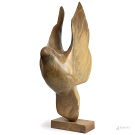 Scultura in legno rappresentante una colomba, base lignea rettangolare, XX secolo, altezza cm 89 (difetti)