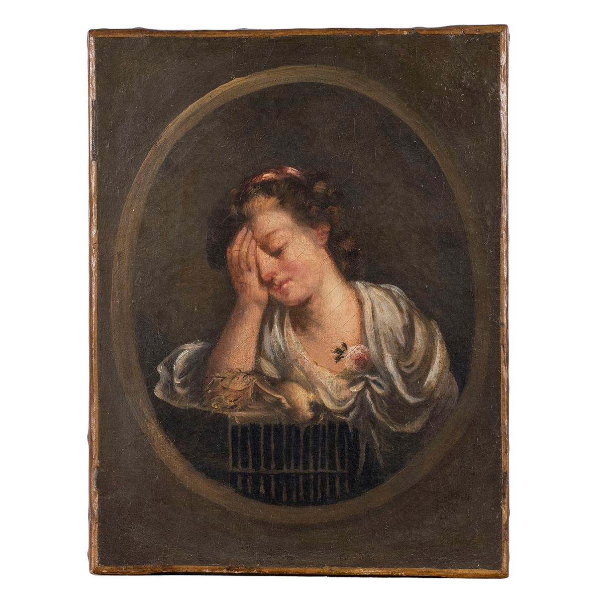 Scuola Francese - "La gabbia vuota", olio su tela - 32,5x24,5 cm. -