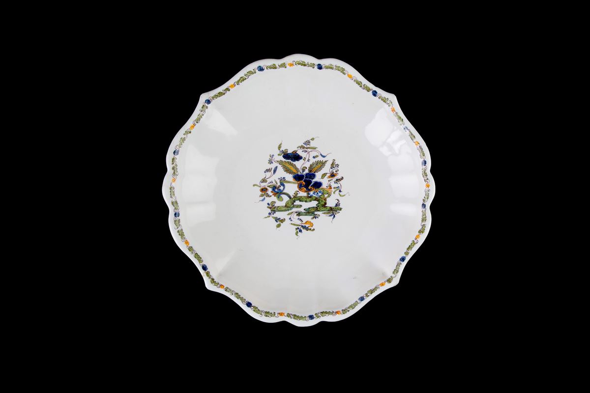 Centrotavola con decori floreali al centro - Centrotavola in maiolica con decori floreali al centro. Manifattura ANTONIBON, Nove di Bassano. XVIII secolo. Difetti. - 4x28 cm ca. -