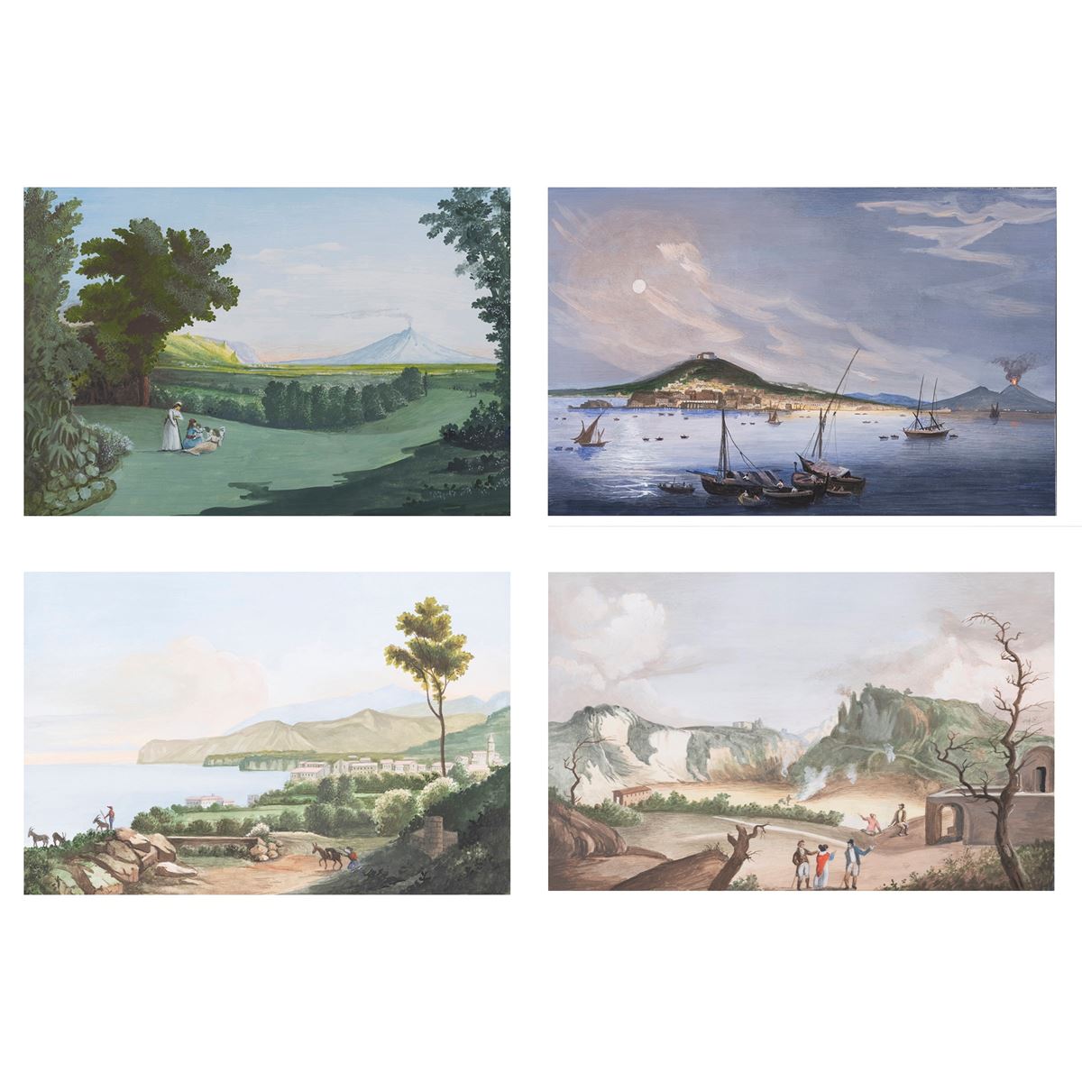 Scuola Napoletana - "Vedute di Napoli, Sorrento e Caserta", quattro gouaches su carta - 20x30 cm. -