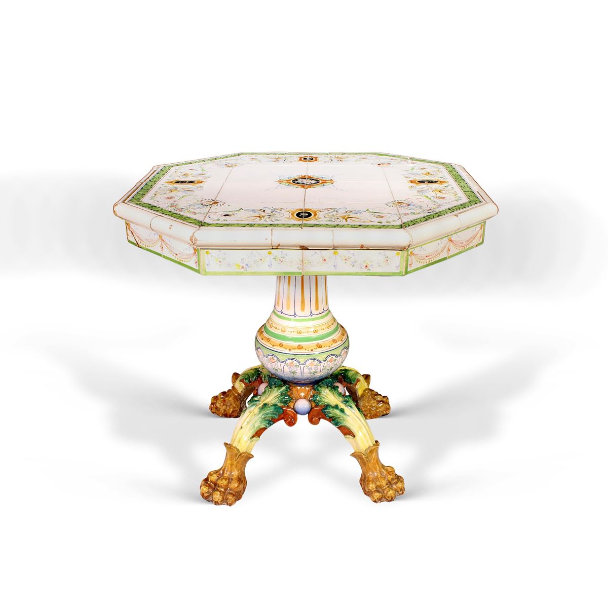• Lot n° 0260 Tavolino ottagonale - In ceramica, difetti. - 76,5x85cm. -