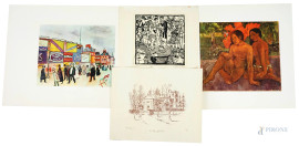 Lotto di varie riproduzioni d'arte e multipli su carta, misure max cm 47x66, XX secolo, (difetti).