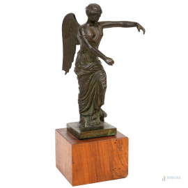 Vittoria alata, XX secolo, bronzo su base lignea, altezza cm 27,5, (difetti)