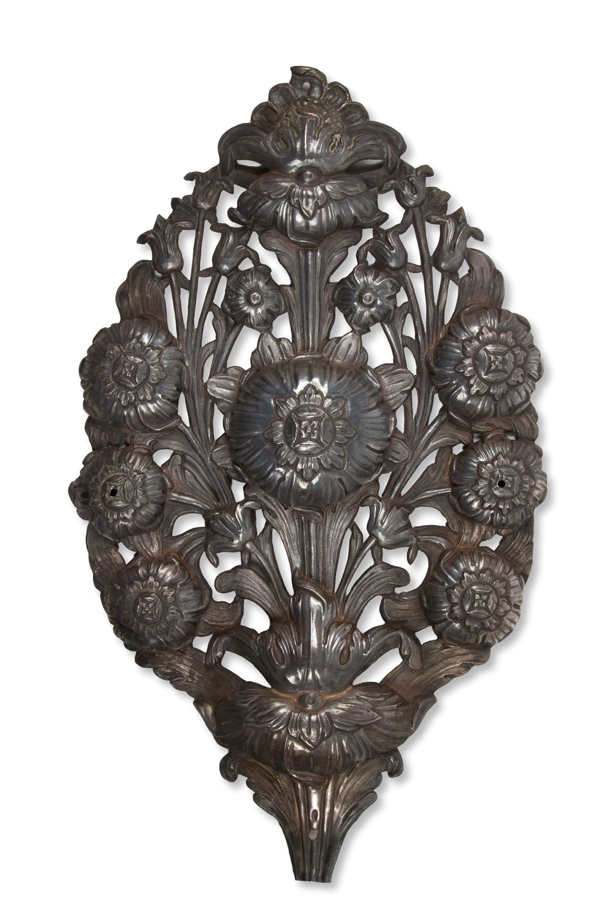 • Lot n° 0053 Palma in argento - Palma in argento sbalzato e traforato, gr. 690 ca. Punzone alla base. Probabilmente Napoli. XVIII secolo. Difetti. - 50x30 cm ca. -