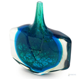 • Lot n° 0487 Vaso "Pesce / Testa d'ascia" in vetro blu di Mdina di Malta, altezza cm 23, iscrizione a graffio "Mdina 1977", (difetti)