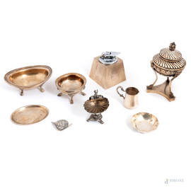• Lot n° 0043 Lotto di oggetti in argento, misure massime cm 14, peso complessivo gr 660