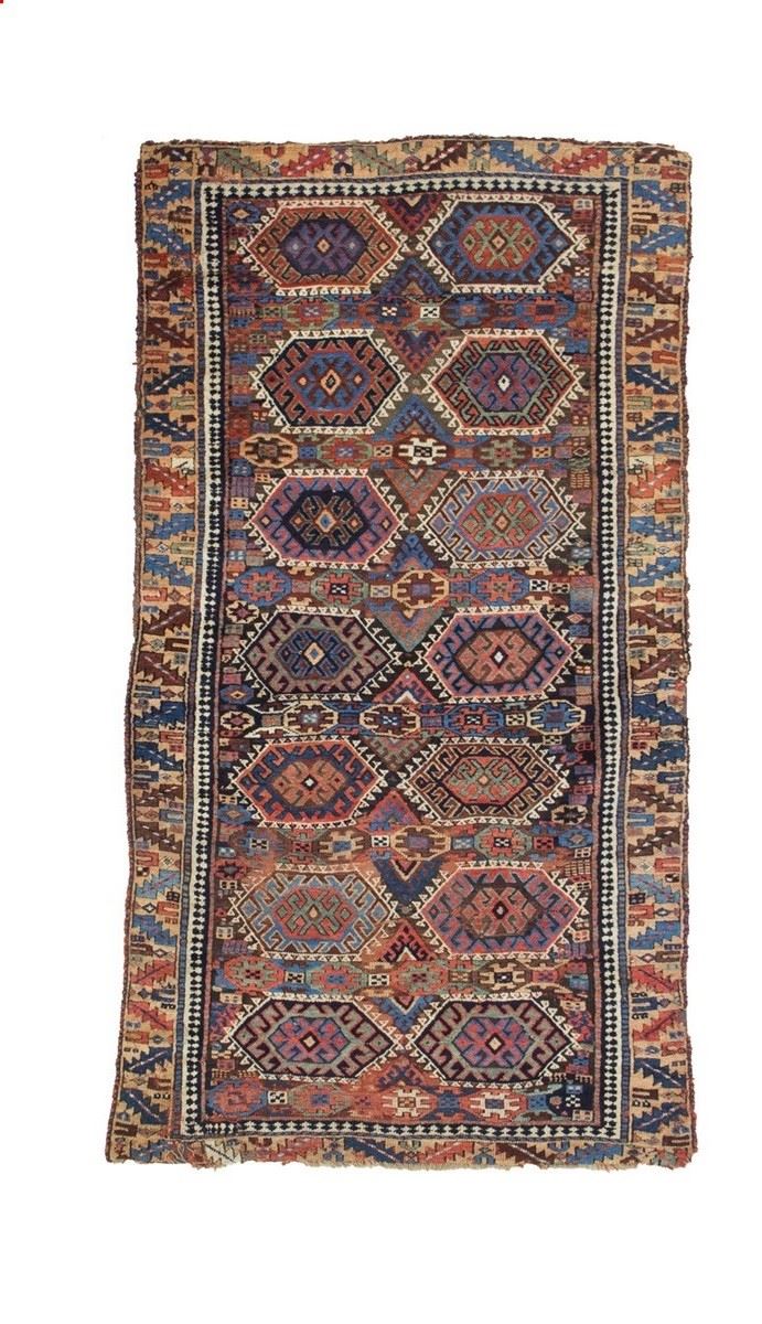 Tappeto Jaf. Persia - Tappeto Jaf. Persia. Seconda metà del XIX secolo. Pubblicato sul catalogo "JAF", 2009 di James Cohen. Tappeto in vello, una testata da restaurare, sul campo piccolissimi punti già restaurati e il colore marrone scuro ossidato. - 222x115 cm ca. -