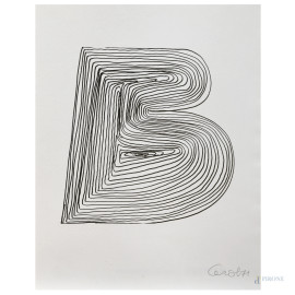 Riproduzione fotolitografica dell'opera di Mario Ceroli "Lettera B", eseguita per la serie Alfabeto di Bolaffi Arte, cm 30x23,5