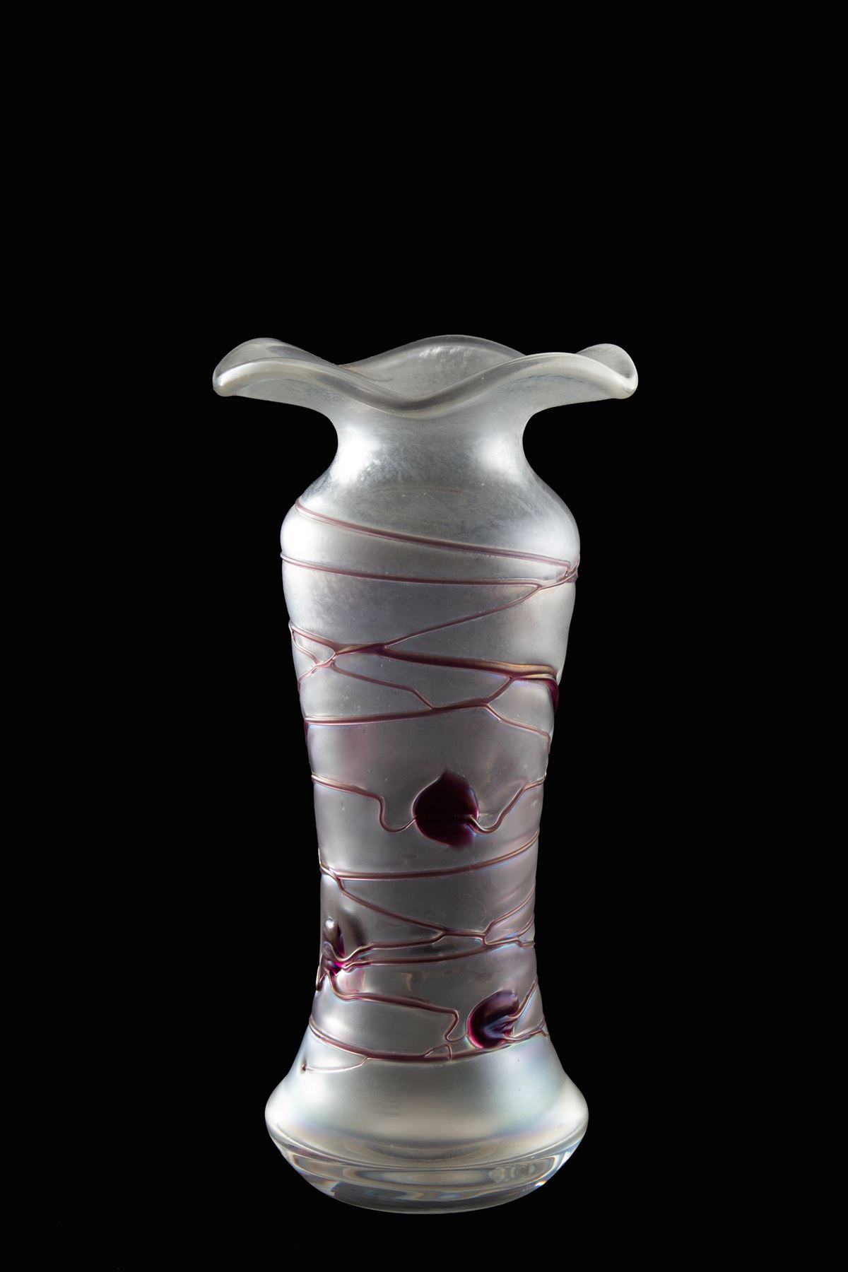 Vaso. VON POSCHINGER - Vaso in vetro decori in pasta di vetro nei toni del rosa-vinaccia. Manifattura VON POSCHINGER. - Alt. 24 cm ca. -