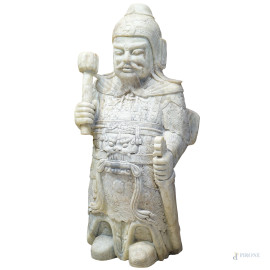 Guerriero, grande scultura in giadeite, arte orientale del XX secolo, cm h 99 circa, (difetti)