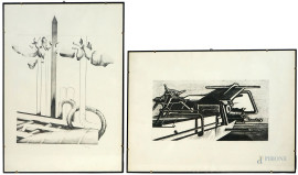 • Lot n° 1018 Senza titolo, lotto di due litografie di autori diversi, cm 70x50, firmate, entro cornici