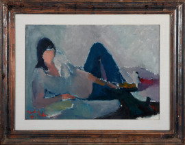 • Lot n° 0849 Donna sdraiata, XX secolo, olio su tela, cm 50x70 entro cornice, firmato e datato in basso a sinistra