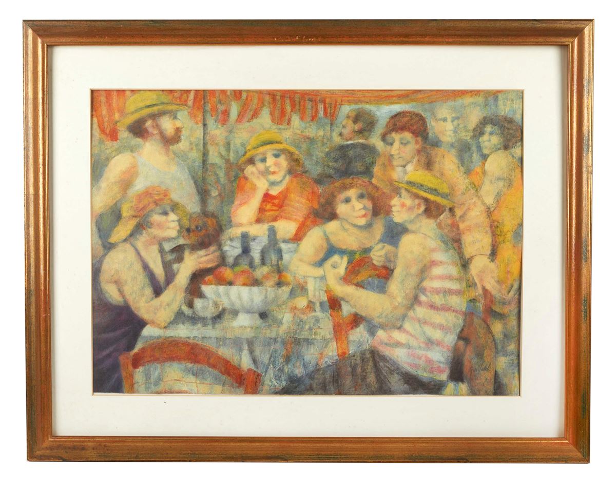 "Figure al bar" - REMO SQUILLANTINI (Stia 1920 - Firenze 1996) "Figure al bar". Litografia a colori su carta. Cm 50x70. Opera firmata in basso a destra Squillantini. Reca numeri di tiratura in basso a sinistra p.d.a. - Cm 50x70 - Litografia a colori su carta