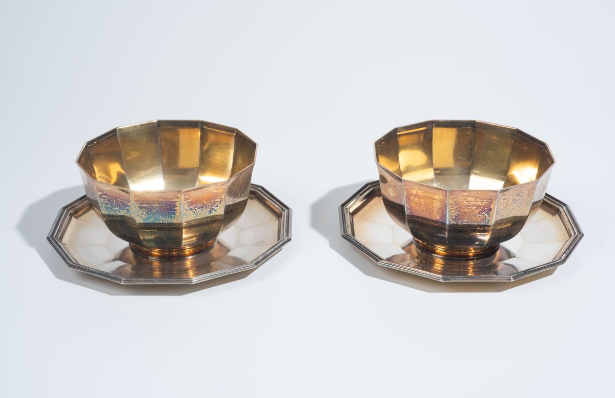 Bulgari - Coppia di ciotole con piattino in argento 925 - Peso: 1148 gr. Piattino: 16,5 cm, ciotola: 6 cmI lotti oggetto della presente asta sono ubicati presso un’abitazione privata sita in Roma.La partecipazione all’asta implica la piena accettazione della condizione secondo cui il ritiro dei beni aggiudicati sarà interamente a cura, rischio e spese dell’aggiudicatario.Resta inteso che eventuali operazioni di smontaggio, imballaggio, trasporto e ritiro dovranno essere organizzate direttamente dall’aggiudicatario.Si raccomanda pertanto di richiedere preventivamente tutte le informazioni necessarie, anche al fine di acquisire eventuali preventivi per il trasporto prima di formulare un’offerta. - -