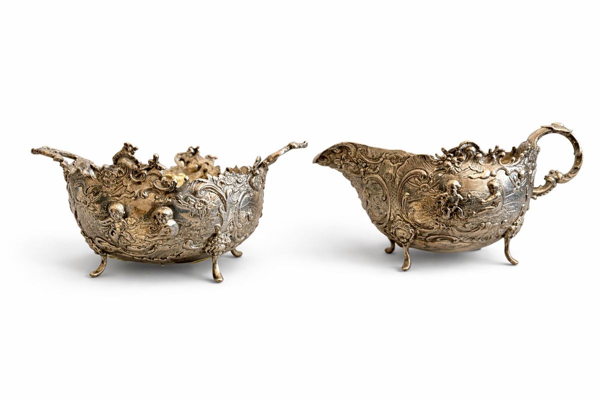 • Lot n° 0332 Zuccheriera e salsiera in metallo argentato - I lotti oggetto della presente asta sono ubicati presso un’abitazione privata sita in Roma.La partecipazione all’asta implica la piena accettazione della condizione secondo cui il ritiro dei beni aggiudicati sarà interamente a cura, rischio e spese dell’aggiudicatario.Resta inteso che eventuali operazioni di smontaggio, imballaggio, trasporto e ritiro dovranno essere organizzate direttamente dall’aggiudicatario.Si raccomanda pertanto di richiedere preventivamente tutte le informazioni necessarie, anche al fine di acquisire eventuali preventivi per il trasporto prima di formulare un’offerta. - h. 6 cm -