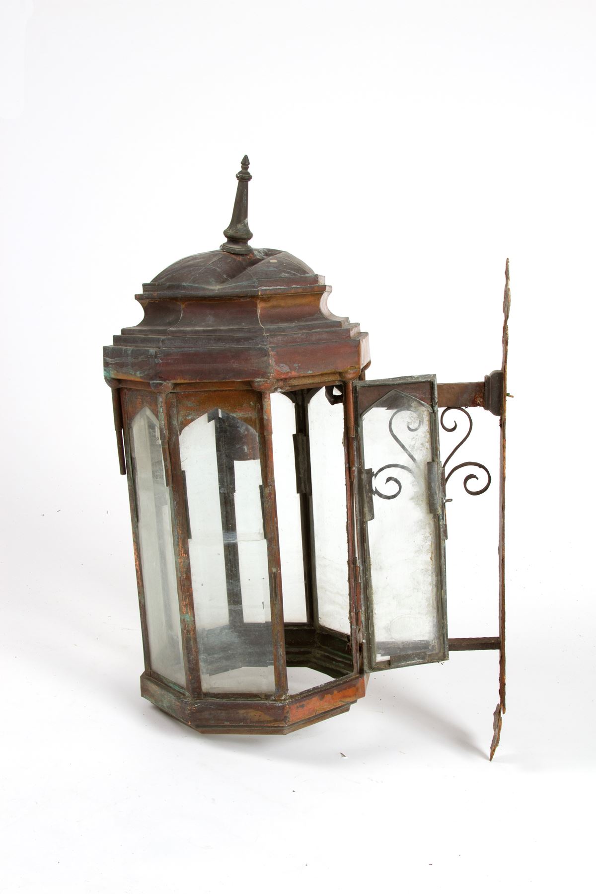 Lanterna - Lanterna ottagonale da muro in rame e vetro. Fine XIX - inizi XX secolo. Difetti. - 80x35x50 cm ca. -