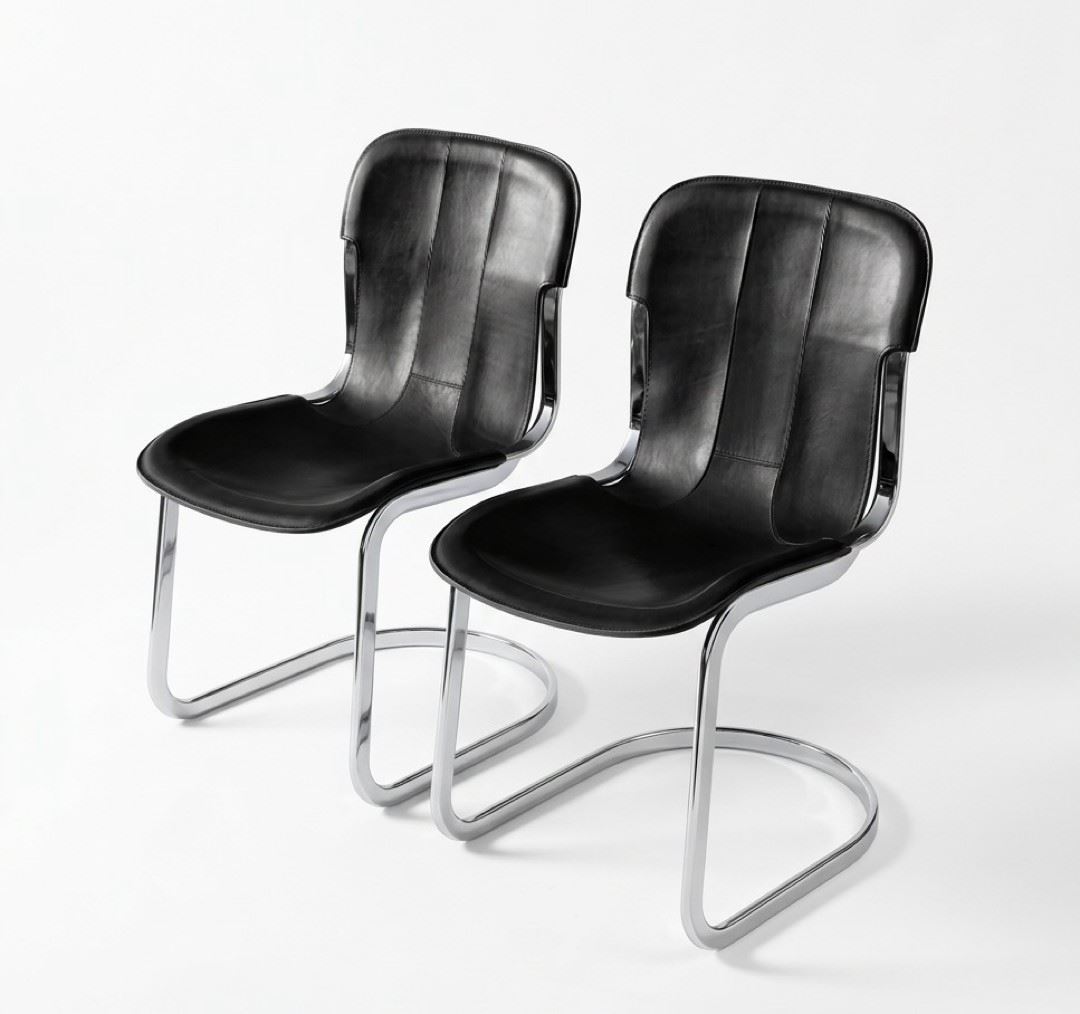Coppia di sedie "Stolar" - WILLY RIZZO Coppia di sedie modello "Stolar" in pelle nera e metallo. Prod. Cidue, Italia, anni '70. Cm cadauna 83x45x56. Recano marchio Cidue, Made in Italy. (lievi difetti) - Cm cadauna 83x45x56 -