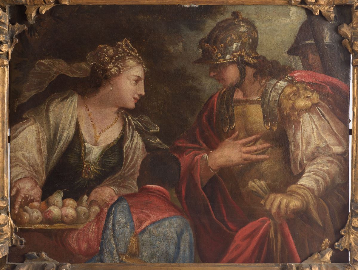• Lot n° 0162 Davide e Abigail - Dipinto raffigurante l’incontro tra Davide e Abigail, episodio tratto dal Primo libro di Samuele (25), nel quale la donna, con saggezza e diplomazia, riesce a placare l’ira del futuro re d’Israele offrendogli doni e riconoscendone il destino regale. La scena è sintetizzata con efficacia narrativa: Abigail, elegantemente abbigliata e accompagnata da un giovane servo, porge frutti su un vassoio, mentre Davide, in armatura e seguito dai suoi uomini, appare colto in atteggiamento riflessivo. Per caratteristiche stilistiche e compositive, l’opera si inserisce nell’ambito della pittura veneta del secondo Seicento, mostrando un linguaggio di matrice internazionale, in cui convergono cultura fiamminga e tradizione veneziana. L’impianto scenico, la ricchezza dei costumi e il gusto per la narrazione “di historia” rimandano alla lezione di Paolo Veronese, mentre l’uso calibrato della luce, con morbidi trapassi luministici, rivela una sensibilità aggiornata sulle esperienze dei pittori tenebrosi attivi nel Veneto. L’opera evidenzia inoltre una conoscenza mediata della pittura barocca dell’Italia centrale e una certa affinità con soluzioni figurative riconducibili anche alla cultura di Pieter Paul Rubens, soprattutto nella resa dei panneggi e nella costruzione delle figure. Sulla base di tali elementi, il dipinto è riferibile a Valentin Lefèvre, artista belga attivo a Venezia dalla fine degli anni Cinquanta del XVII secolo, noto per la sua capacità di fondere modelli nordici e tradizione veneta in una sintesi originale e colta. L’attribuzione trova riscontro in confronti stilistici con opere quali Rebecca al pozzo, Diana e Callisto, Apollo e la Sibilla Cumana e la Presentazione al tempio, che presentano analogie nei volti, nelle silhouettes e nel trattamento dei drappeggi. Opera probabilmente destinata a una quadreria privata, come suggeriscono il formato e la qualità esecutiva, si colloca nella fase matura dell’artista. Entro cornice coeva.Opera accompagnata da expertise del Prof. Pierluigi Carofano datata 31 marzo 2026. - 54,5 x 70,5 cm - Olio su tela