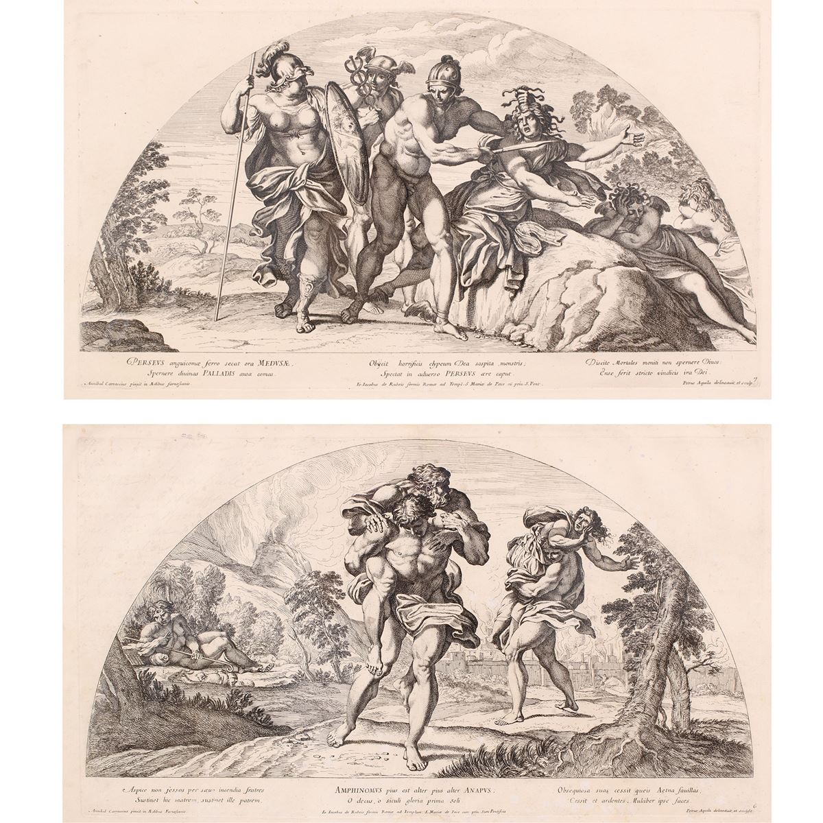 • Lot n° 0283 Pietro Aquila - coppia di incisioni con soggetti mitologici tratte da opere di Annibale Carracci - 27,5x49 cm. -