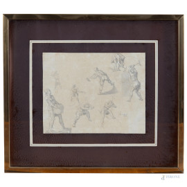 Studio di mestieri, tecnica mista su carta, cm 20x25, entro cornice, (gore, foxing, tracce di umidità)