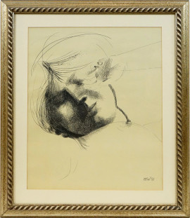 • Lot n° 0718 Volto di donna, stampa su carta, cm 50x41, 1970, entro cornice