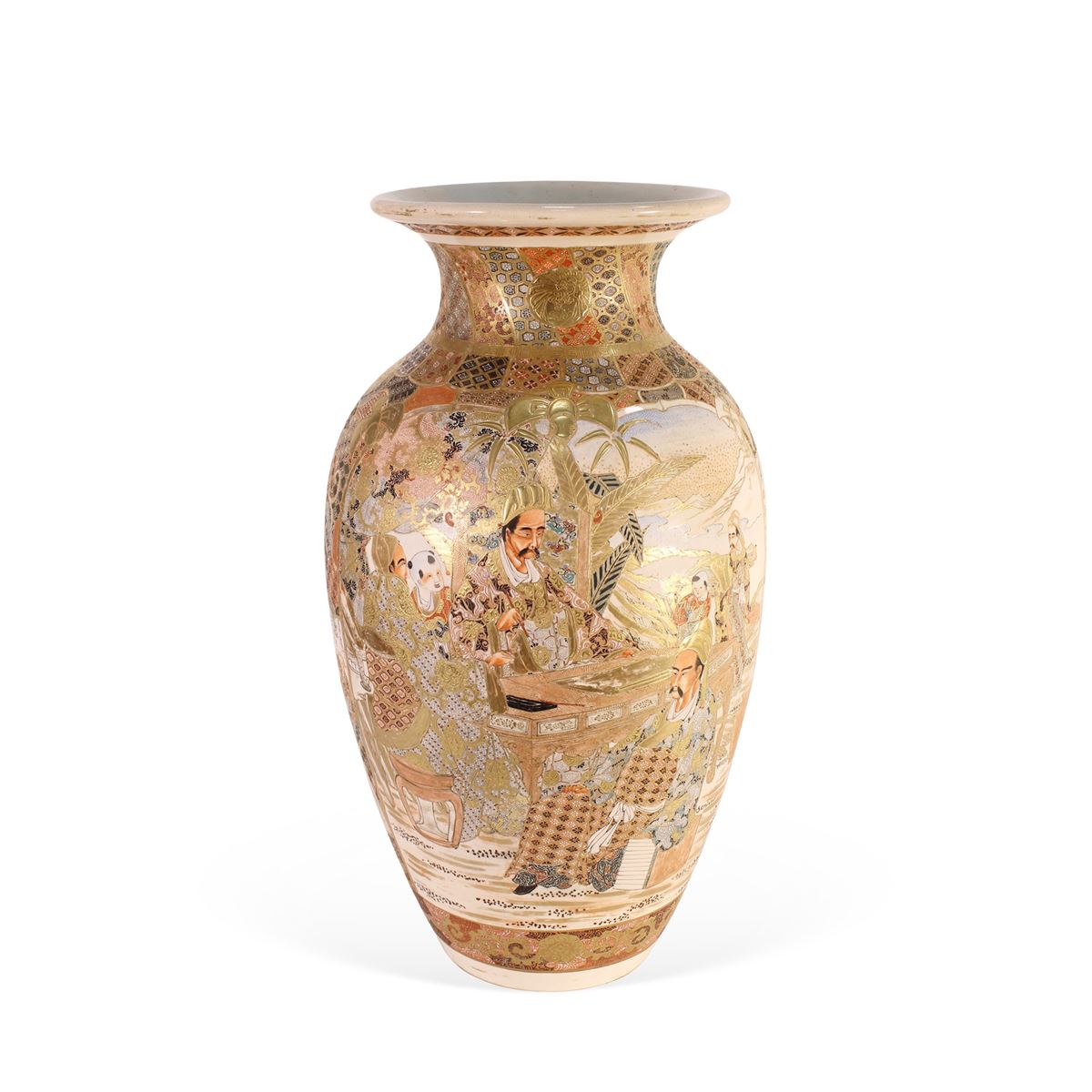Vaso in porcellana Satsuma - dipinta in policromia con scene e personaggi - 61x32cm. -