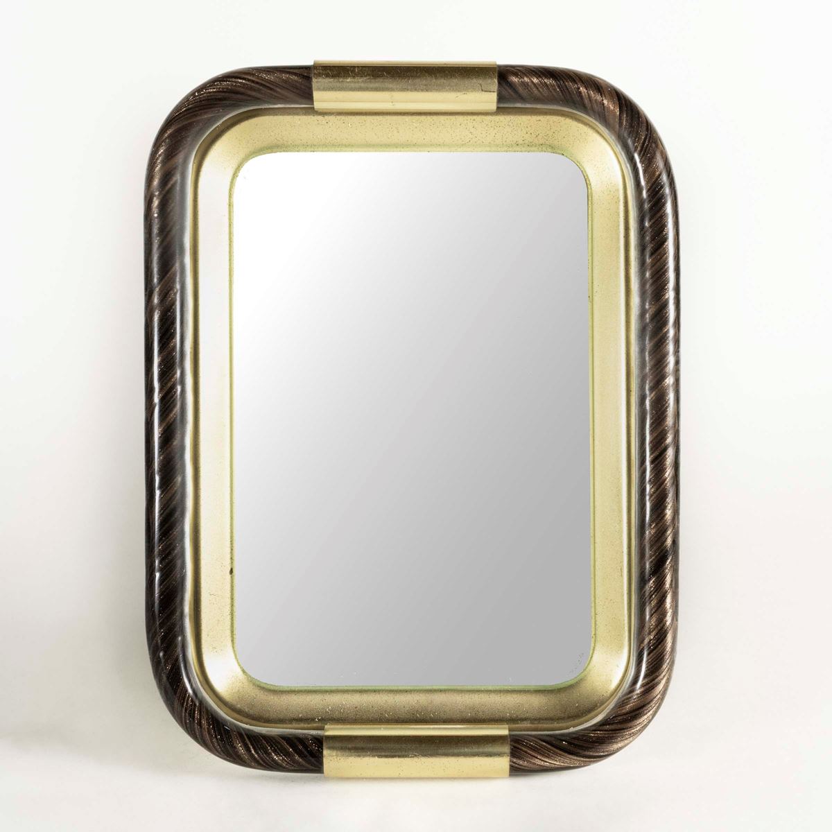 • Lot n° 0117 Manifattura italiana - specchio da tavolo in vetro avventurina, ottone e vetro specchiato, usure - 32x24x8 cm. -