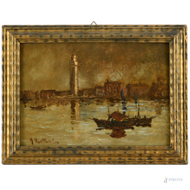• Lot n° 0536 Scorcio di Venezia, olio su compensato, cm 19x26 entro cornice, firmato in basso a sinistra " G. Venturin"