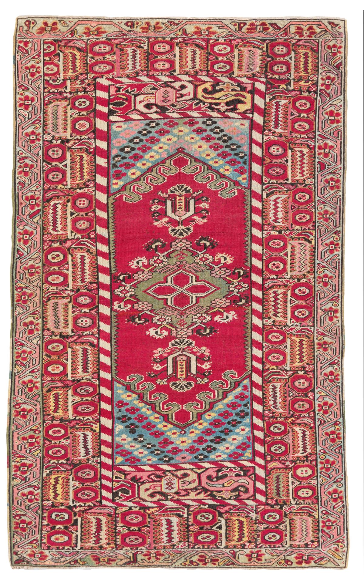 Tappeto Ghiordes. Anatolia - Tappeto Ghiordes. Anatolia. Seconda metà del XIX secolo. Ottimo stato di conservazione, testate ricostruite. - 202x125 cm ca. -