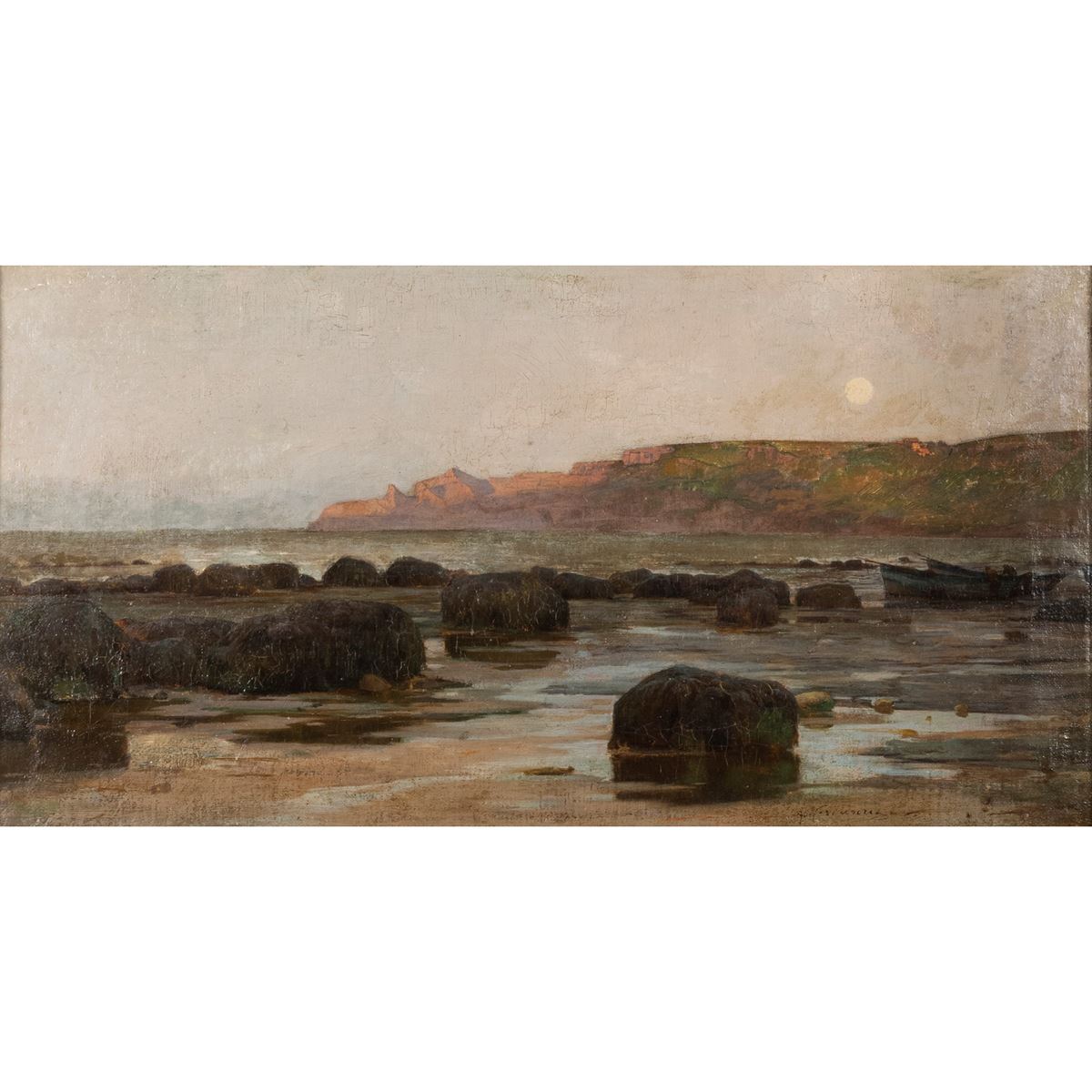 Achille Vertunni - "Marina", olio su tavoletta, firmato in basso a destra, entro cornice - 23,5x43,5 cm -