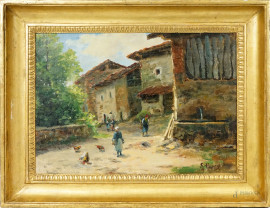 Aia lombarda, olio su tela, cm 35x50, firmato, entro cornice