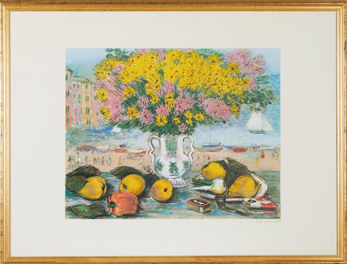 "Natura morta a Portofino" - MICHELE CASCELLA (Ortona 1892 - Milano 1989) "Natura morta a Portofino". Litografia a colori su carta. Cm foglio: 65x86. Opera firmata in basso a destra M. Cascella. Reca numeri di tiratura in basso a sinistra p.a. - Cm foglio: 65x86 - Litografia a colori su carta