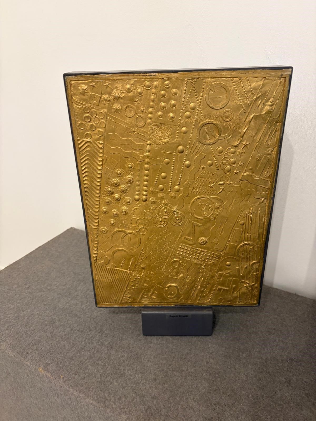 Scultura mod. Futuro Proximo - Scultura modello Futuro Proximo in porcellana dorata montata su struttura in acciaio laccato grigio. - 46,5x30x8 cm ca. -