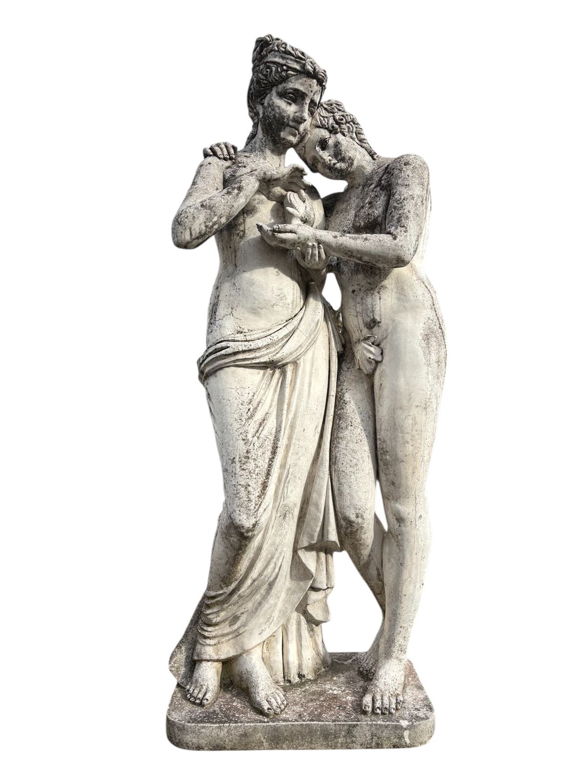 • Lot n° 0165 Scultura "AMANTI" - Scultura in agglomerato in pietra raffigurante "AMANTI". Oggetto ubicato presso l'affidante. - Alt. 160 cm ca. -