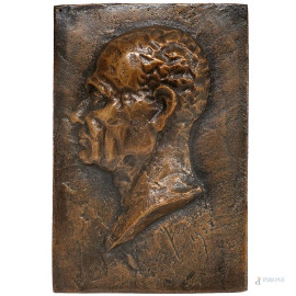 • Lot n° 0858 Placca in bronzo con profilo virile, XX secolo, cm 14x9