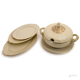 • Lot n° 0976 Lotto composto da 3 fiamminghe, 1 piatto da portata e 1 zuppiera in porcellana Bavaria, misura massima cm 23x35x23 (difetti)