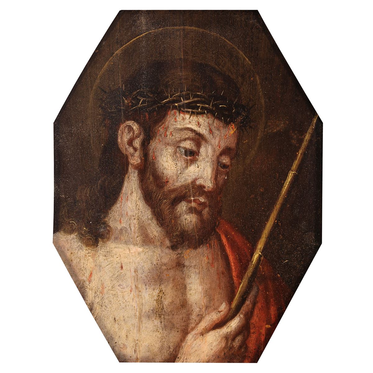 Scuola lombarda - "Ecce homo", olio su tavola, entro cornice - 24x18,5cm -