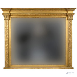 Specchiera in legno intagliato e dorato, XX secolo, misure complessive cm 89,5x109,5, (segni di usura)