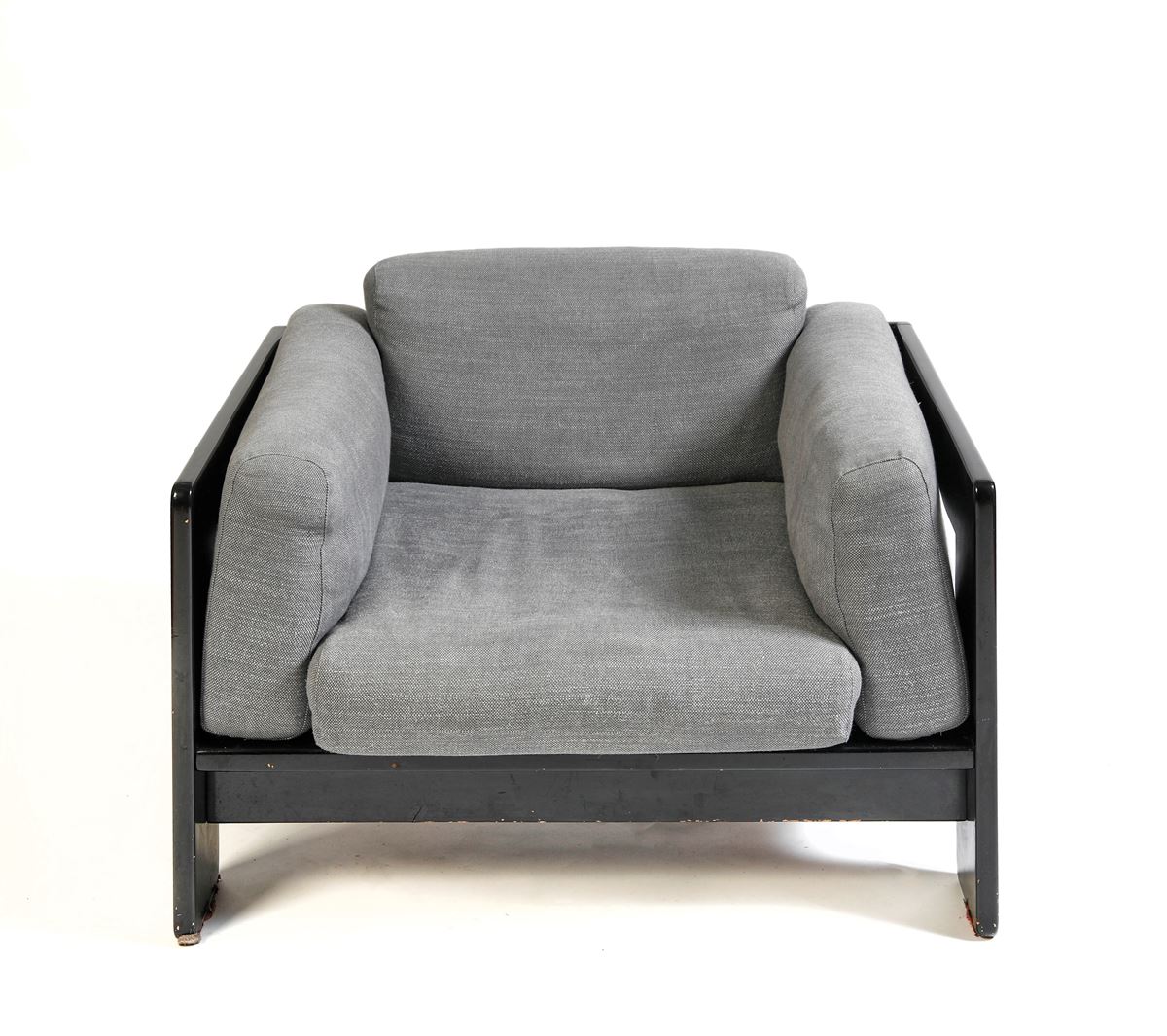 Poltrona Bastiano - AFRA & TOBIA SCARPA Poltrona modello Bastiano in legno laccato nero e cuscini in tessuto grigio. 1962. Cm 67x79x91. Prod. Gavina, Italia. - Cm 67x79x91 -