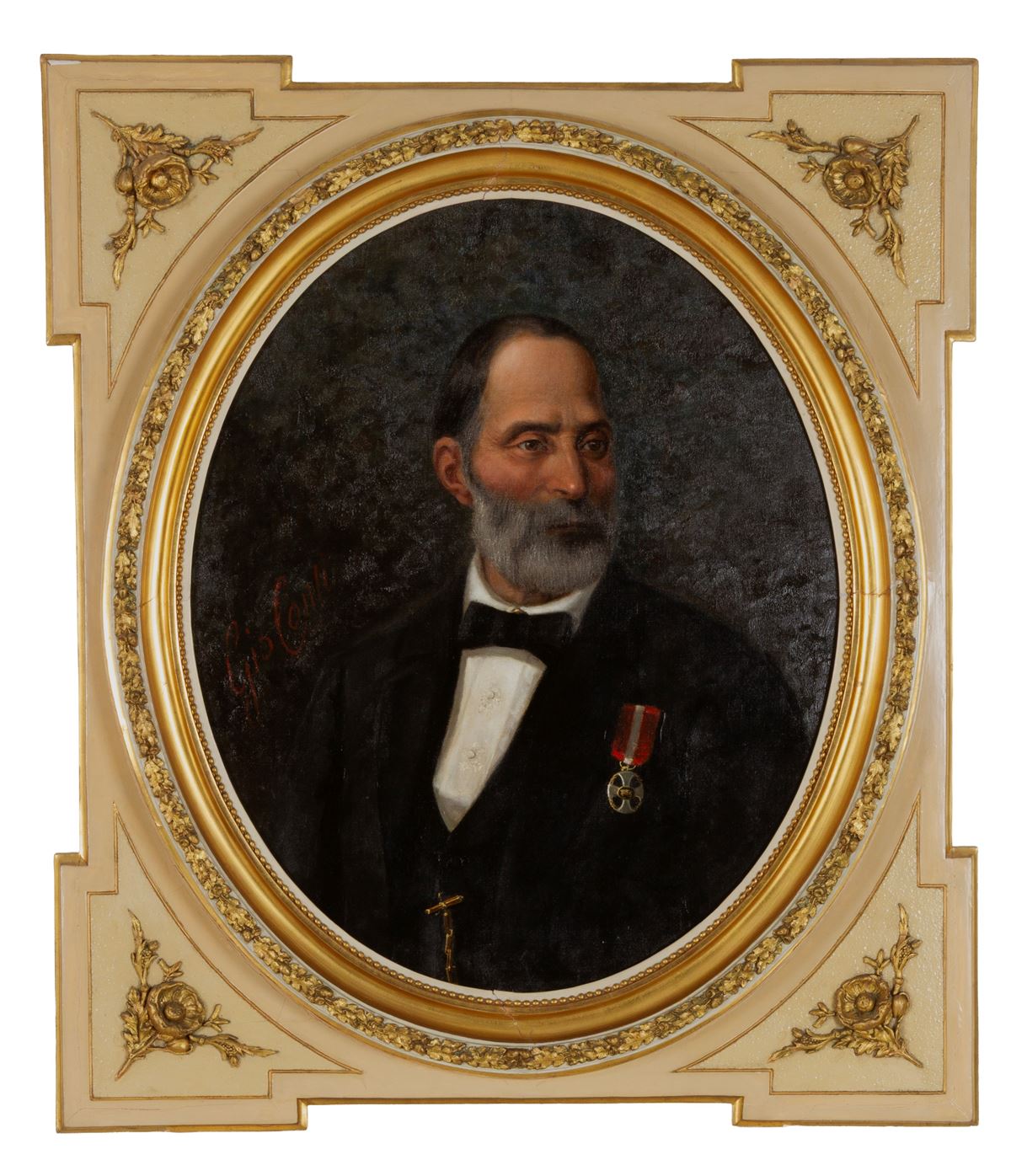 Dipinto "GENTILUOMO" - Dipinto olio su tela raffigurante "GENTILUOMO". Firmato GIO. CONTI a sinistra. Fine XIX-inizi XX secolo. In cornice dipinta e dorata. Restauri. - 77x63 cm ca. -