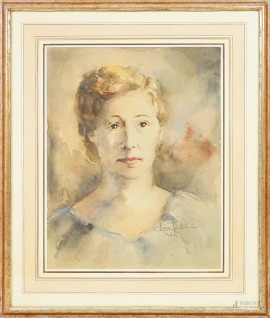 • Lot n° 0561 Ritratto di signora, acquerello su carta, firmato, XX secolo, cm 39x30,5, entro cornice (difetti)