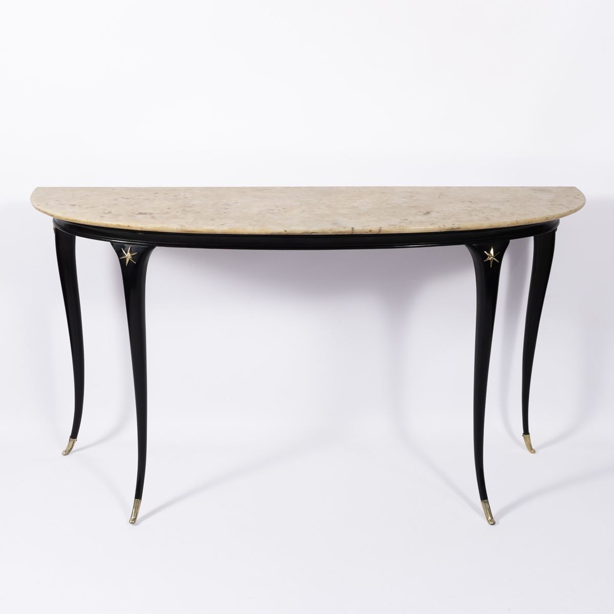 Paolo Buffa, attribuito - console in legno laccato, ottone e marmo, lievi usure - 80x150x44 cm. -