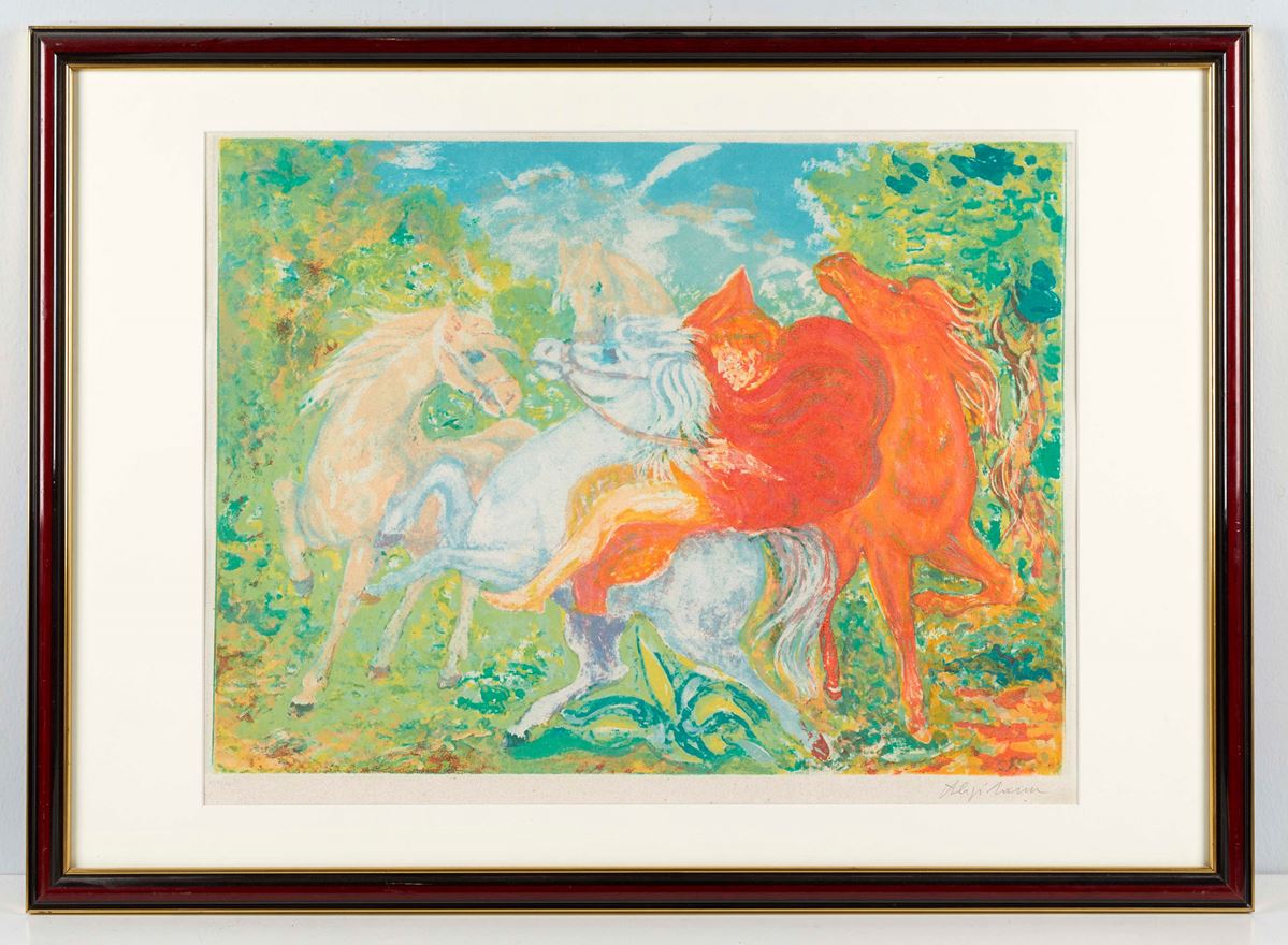 "Cavalli" - ALIGI SASSU (Milano 1912 - Pollença 2000) "Cavalli". Acquatinta su carta. Cm lastra: 41x55,5. Opera firmata in basso a destra Aligi Sassu. Reca numeri di tiratura in basso a sinistra XLV / XL. - Cm lastra: 41x55,5 - Acquatinta su carta