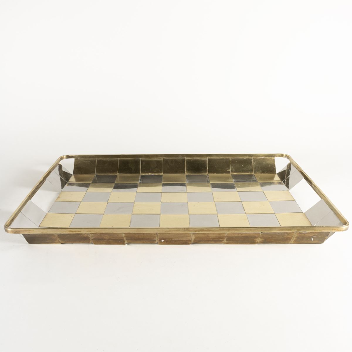 • Lot n° 0162 Manifattura italiana - vassoio in metallo dorato e metallo argentato, lievi usure - 4x51x36 cm. -