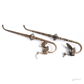 Coppia di pipe in metallo argentato, XX secolo, cm 34,5