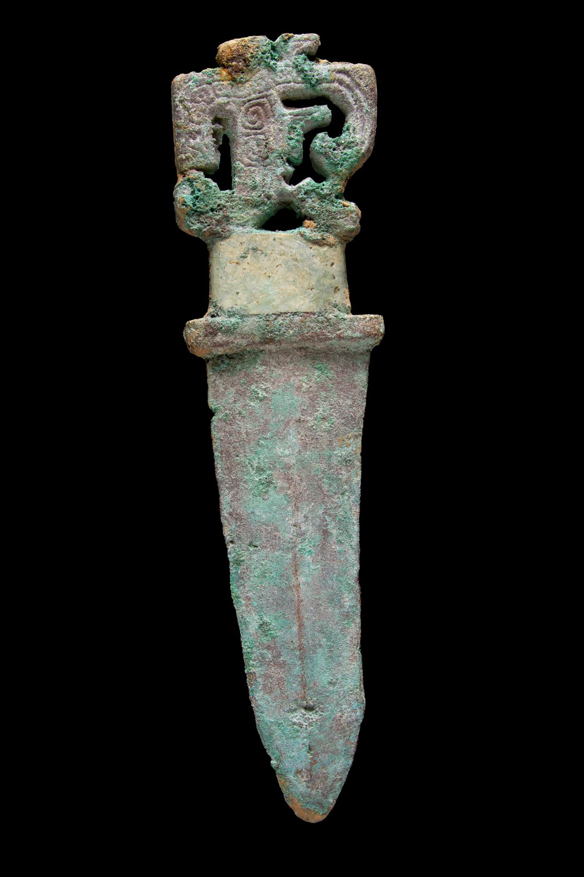 • Lot n° 0018 Pugnale in metallo - Pugnale in metallo con impugnatura scolpita. Cina. - Lung. 26,5 cm ca. -