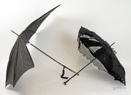 Lotto composto da un ombrello ed un parasole in materiali diversi, lunghezza cm 100 circa, (difetti).