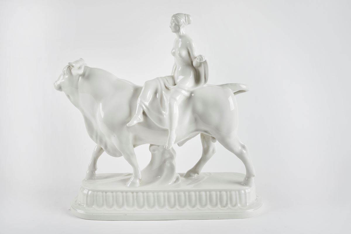 Senza Titolo - KPM PORCELAIN “Ratto di Europa”. Scultura in porcellana. Metà del XX secolo. Cm 40,5x39,5x13,5. Sotto la base reca marchio. - Cm 40,5x39,5x13,5 -